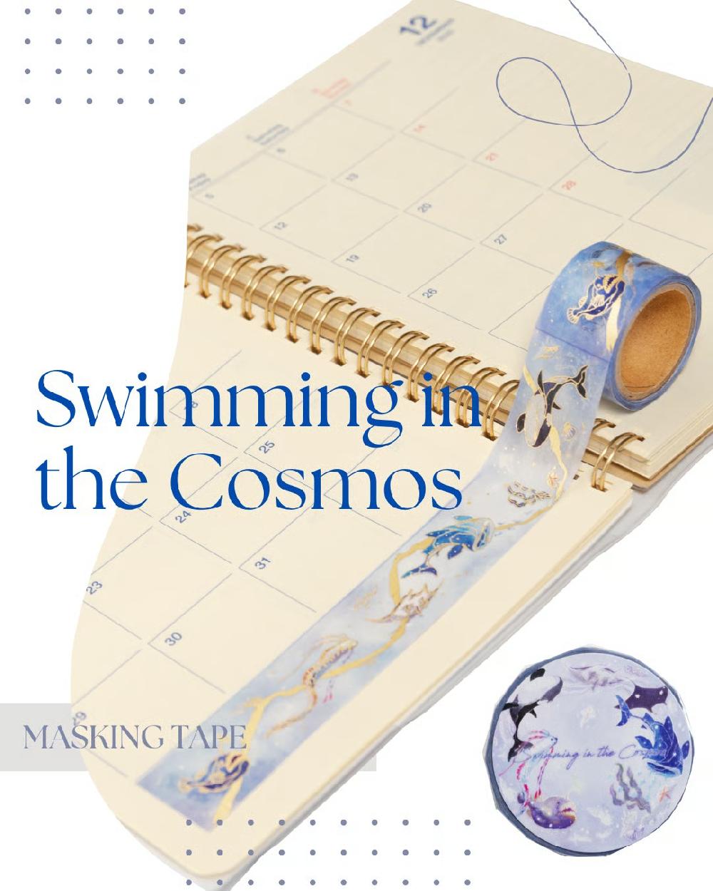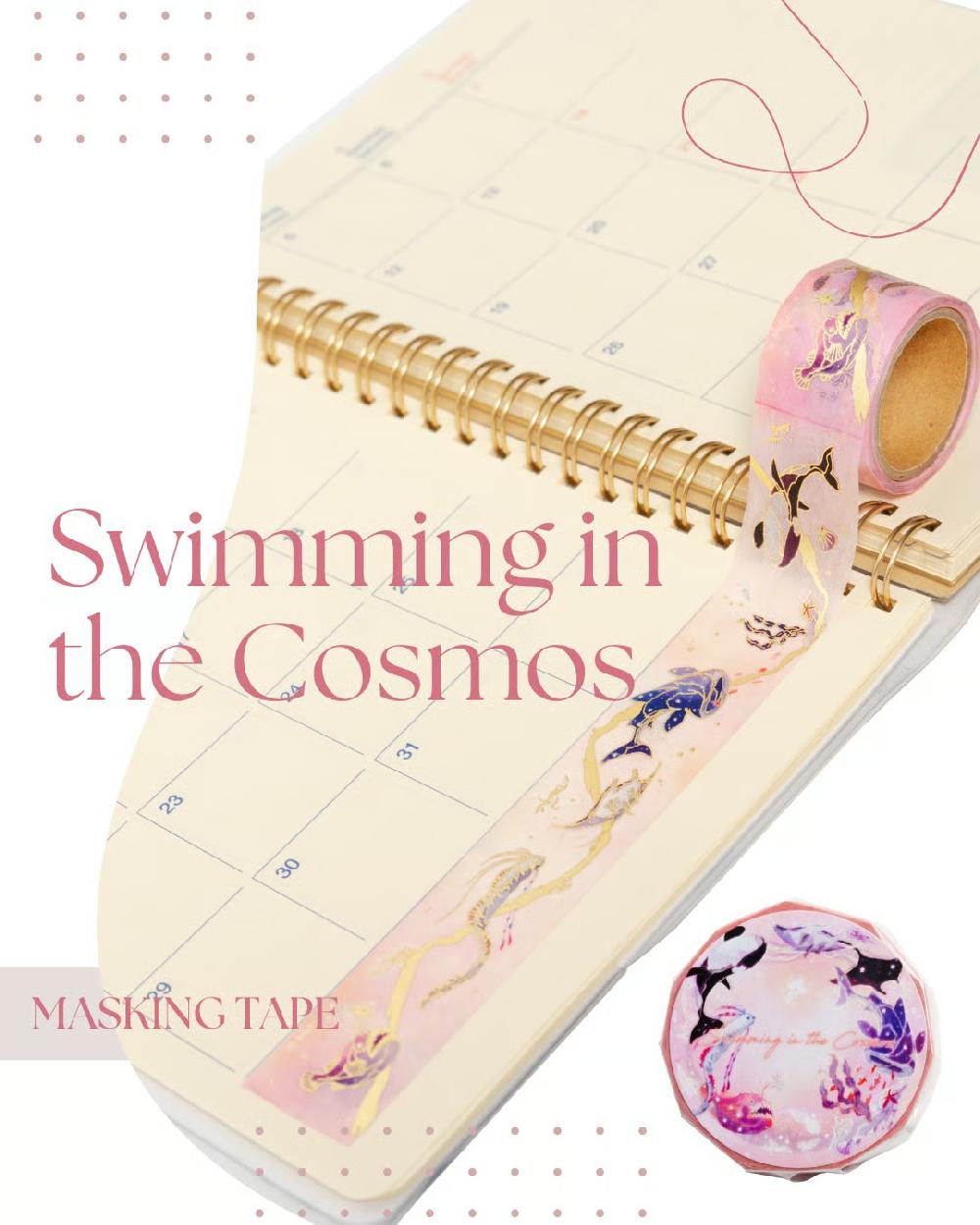 「-宇宙を泳ぐ-」をテーマに、 まるで夢の中を漂うように、宇宙を優雅に泳ぐ海の生き物たちが描かれています。幻想的な世界観と繊細なアートが融合したスペシャルなマスキングテープになっております!