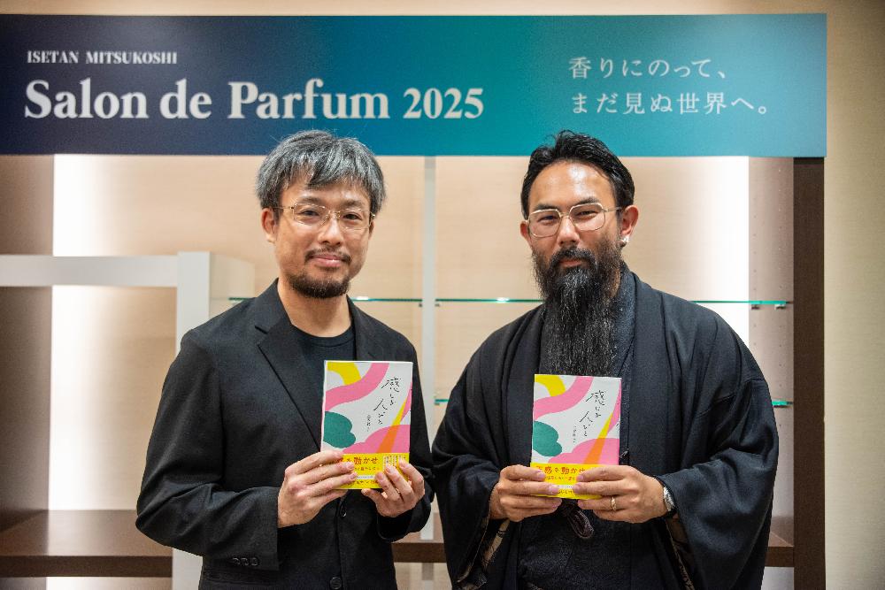 その会期中、香水ブランド<サノマ>のディレクター・渡辺裕太さんと、『感じる人びと』著者・二宮敦人さんによるトークイベント 「『感じること』について 〜『感じる人びと』著者 二宮敦人氏と<サノマ>ディレクター渡辺裕太氏の対談〜」が伊勢丹会館にて開催されました。