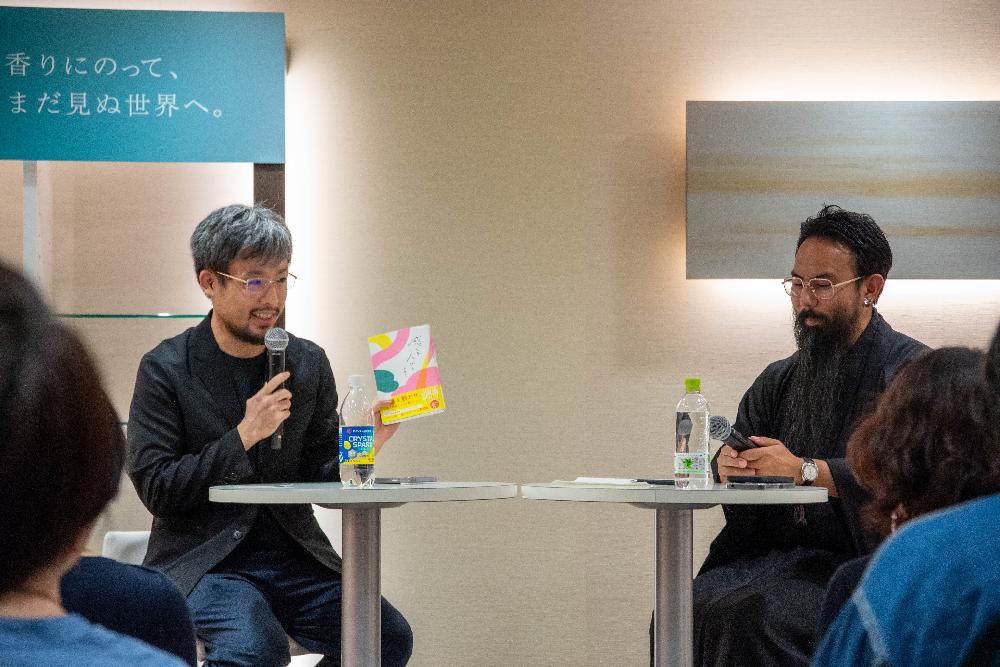 トークイベントでは、香水づくりと小説づくりという異なる創作の現場から、「感じる」ことの本質について語り合いました。“感じる”とは、言葉にできない思考の形。香りや物語を通して、目に見えない感覚をかたちにするお二人の対話は、示唆に富んだひとときとなりました。